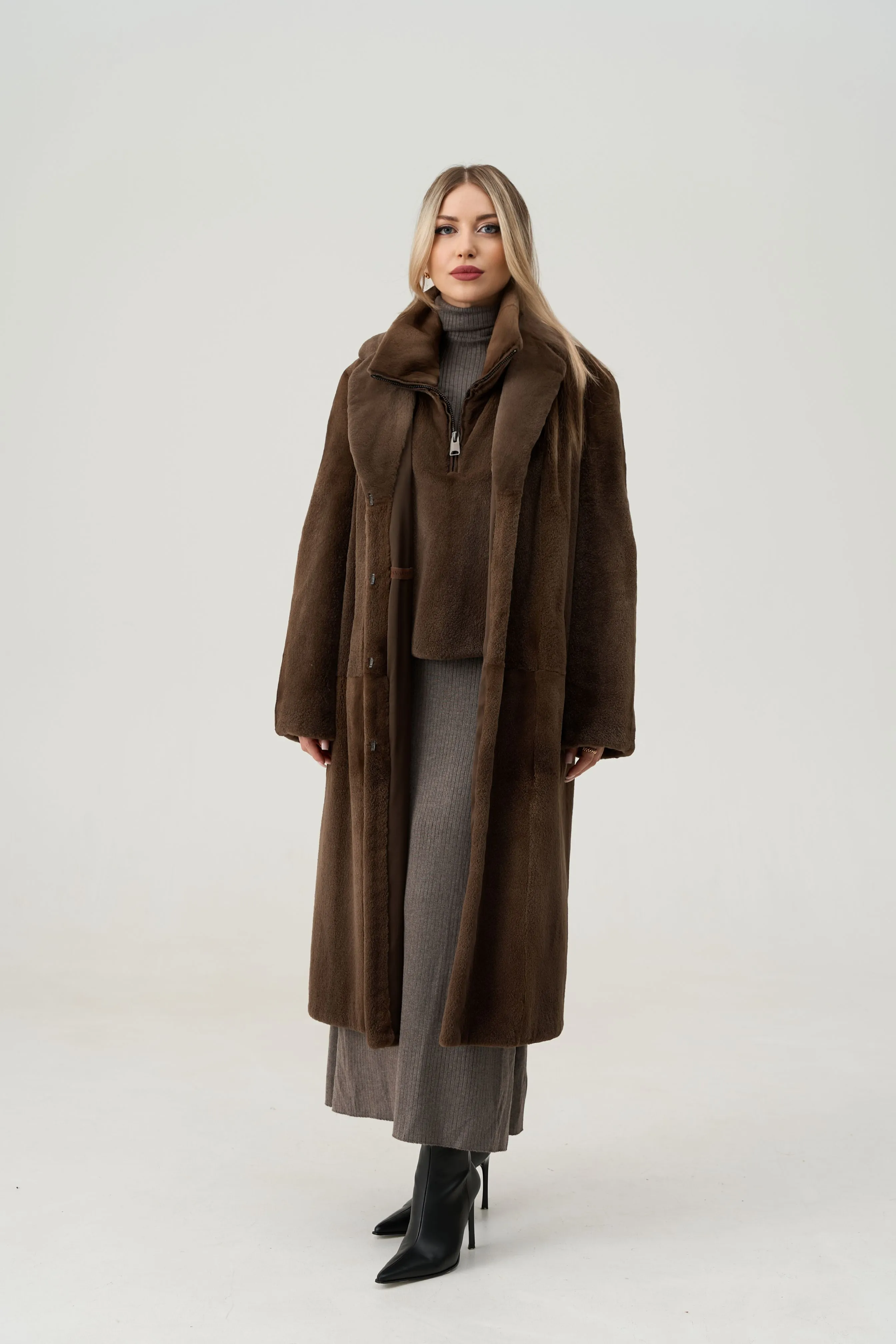 Комплект из шубы и манишки из стриженной норки